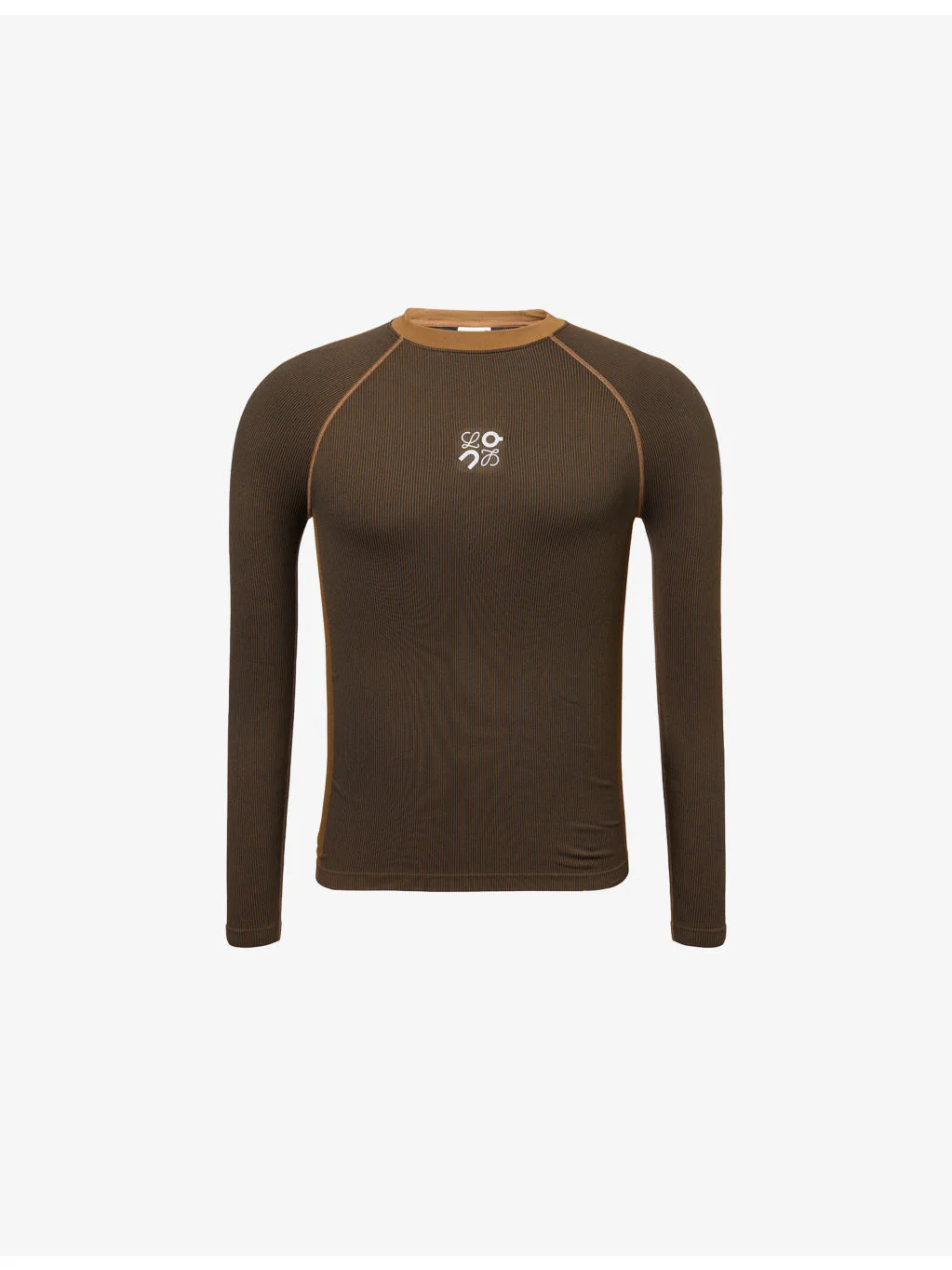 PRODUCT DETAILS - Loewe x ON jersey t-shirt - 50% polyamide, 35% polyester, 15% elastane - Crewneck, long sleeves, reflective logo print at front, text print at back, straight hem, striped pattern - Machine wash at 30°C - Model is 6ft 2in/1.88m and wears a size medium - Lightweight, stretchy Ref: R04536753