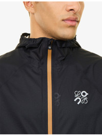 PRODUCT DETAILS - Loewe x ON shell jacket - 100% polyamide - Exposed zip fastening at front - Elasticated fixed hood, long sleeves, reflective logo print at chest, contrast zip, partially elasticated hem - Machine wash at 30°C - Model is 6ft 2in/1.88m and wears a size medium - Lightweight, non-stretch Ref: R04536744