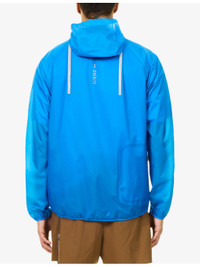 PRODUCT DETAILS - Loewe x ON shell jacket - 100% polyamide - Exposed zip fastening at front - Elasticated fixed hood, long sleeves, reflective logo print at chest, contrast zip, partially elasticated hem - Machine wash at 30°C - Model is 6ft 2in/1.88m and wears a size medium - Lightweight, non-stretch Ref: R04536744