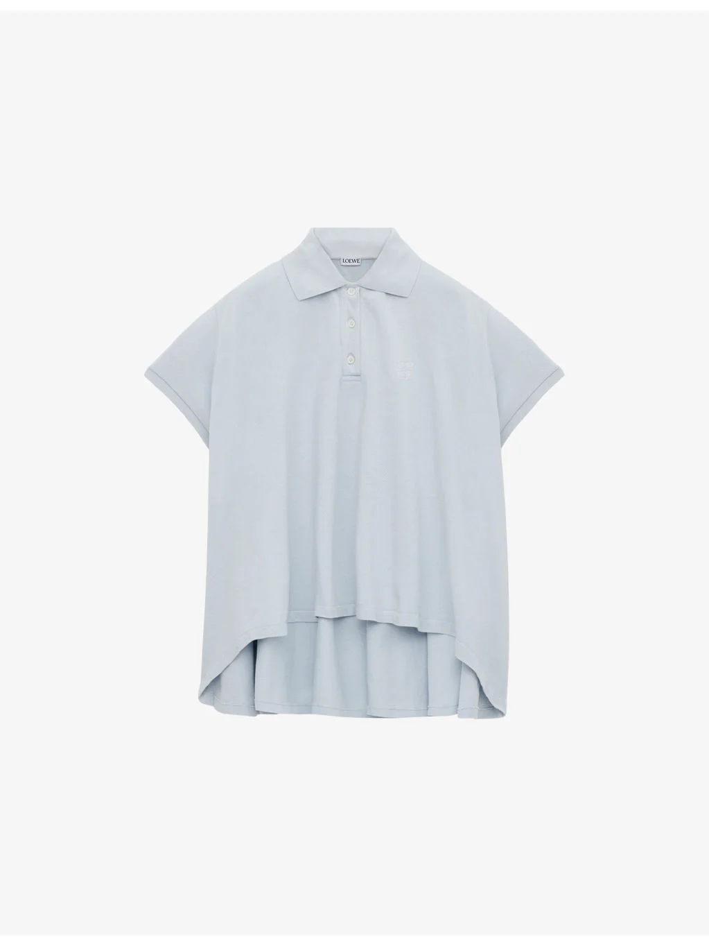 PRODUCT DETAILS - LOEWE cotton-blend polo shirt - 95% cotton, 5% polyester - Exposed button fastening at front - Relaxed fit, polo collar, short sleeves, logo embroidery, dipped hem - Machine wash cold - Made in Portugal - True to size - Lightweight, non-stretch Ref: R04567051