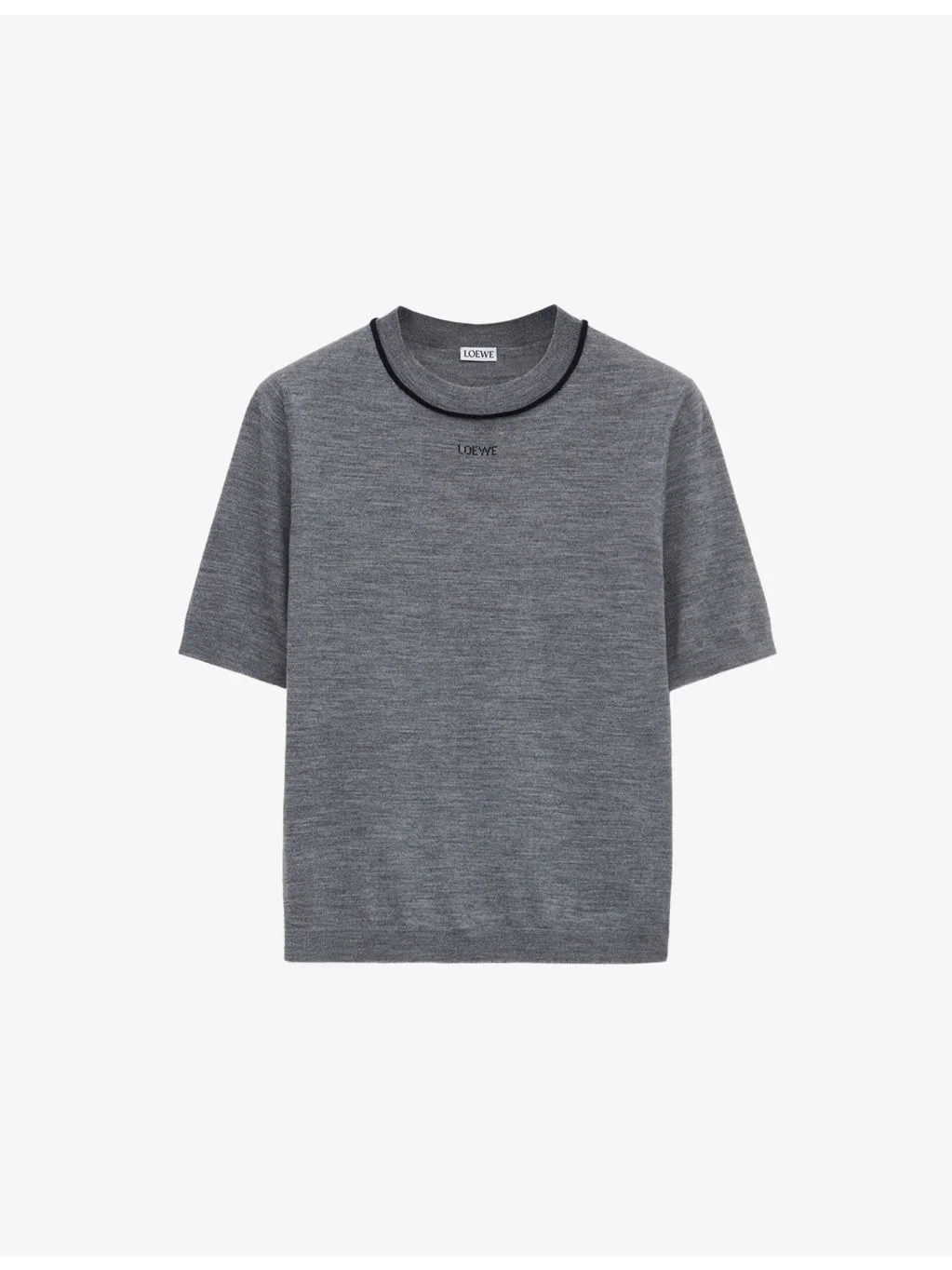 PRODUCT DETAILS - Loewe wool jumper - 100% wool - Slips on - Round neck, short sleeves, rolled neckline, logo at front - Dry clean - True to size - Lightweight, slight stretch Ref: R04567036