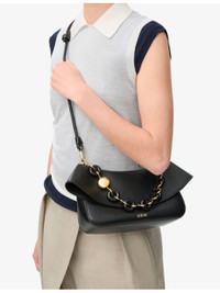 PRODUCT DETAILS - Loewe leather shoulder bag - 100% leather - Magnetic flap closure - Curved body, flap front, detachable tubular leather strap, detachable donut chain, one main compartment, one internal pocket, gold-tone embossed LOEWE, engraved Anagram - Height 18cm, length 26cm, depth 13cm - Specialist leather clean - Comes width a dust bag Ref: R04489873