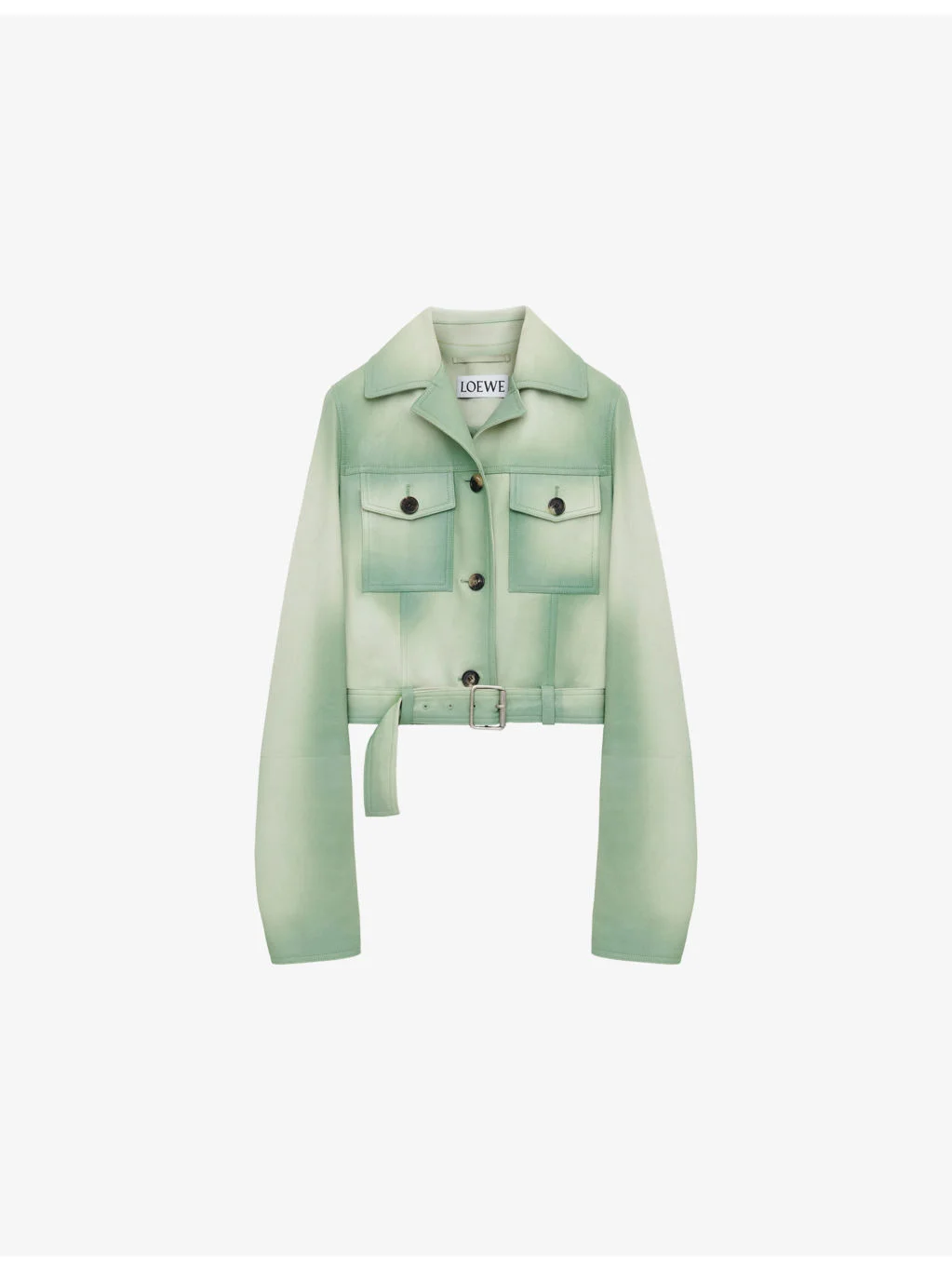 PRODUCT DETAILS - Loewe leather jacket - 100% lamb leather - Exposed button fastening at front - Notched collar, long sleeves, two buttoned patch pockets at front, adjustable/removable belt fastening at waist - Specialist leather clean - Made in Italy - True to size - Midweight, non-stretch Ref: R04566916