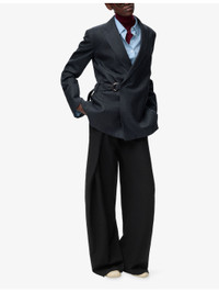 PRODUCT DETAILS - Loewe wool trousers - 95% wool, 5% calf leather - Adjustable buckle fastening - Wide leg, adjustable buckle fastening at waist, pleated detailing at front - Dry clean - Made in Italy - True to size - Lightweight, non-stretch Ref: R04566972