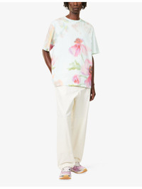 PRODUCT DETAILS - Loewe cotton-jersey T-shirt - 100% cotton; trims 97% cotton, 3% elastane - Relaxed fit, ribbed crewneck, short sleeves, brand print at back, all-over flower print - Machine wash at 30°C - Made in Portugal - Model is 6ft 2in/1.88m and wears a size medium - Lightweight, stretchy Ref: R04494958