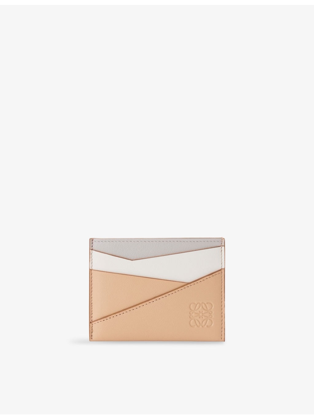 PRODUCT DETAILS - Loeweleather wallet - 100% leather - Puzzle panels with tonal stitching, calfskin lining, three card slots, central compartment hand-painted black edges - Height 7.5cm, width 10.3cm, depth 0.3cm - Specialist leather clean - Made in Spain Ref: R04492647