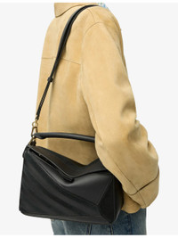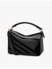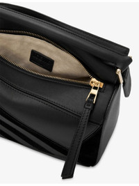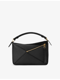 PRODUCT DETAILS - Loewe leather top-handle bag - 100% leather - Zip fastening - Cuboid shape, contrast panels, removable and adjustable shoulder strap with embossed branding, leather handle, embossed Anagram on front, exterior rear pocket, one main compartment, one internal slip pocket, fully lined - Height 16.5cm, width 24cm, depth 10.5cm - Specialist leather clean - Made in Spain Ref: R04492606