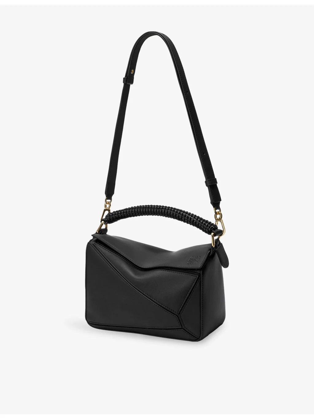 Puzzle Woven-Handle Mini Leather Cross-Body Bag