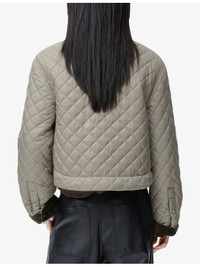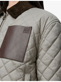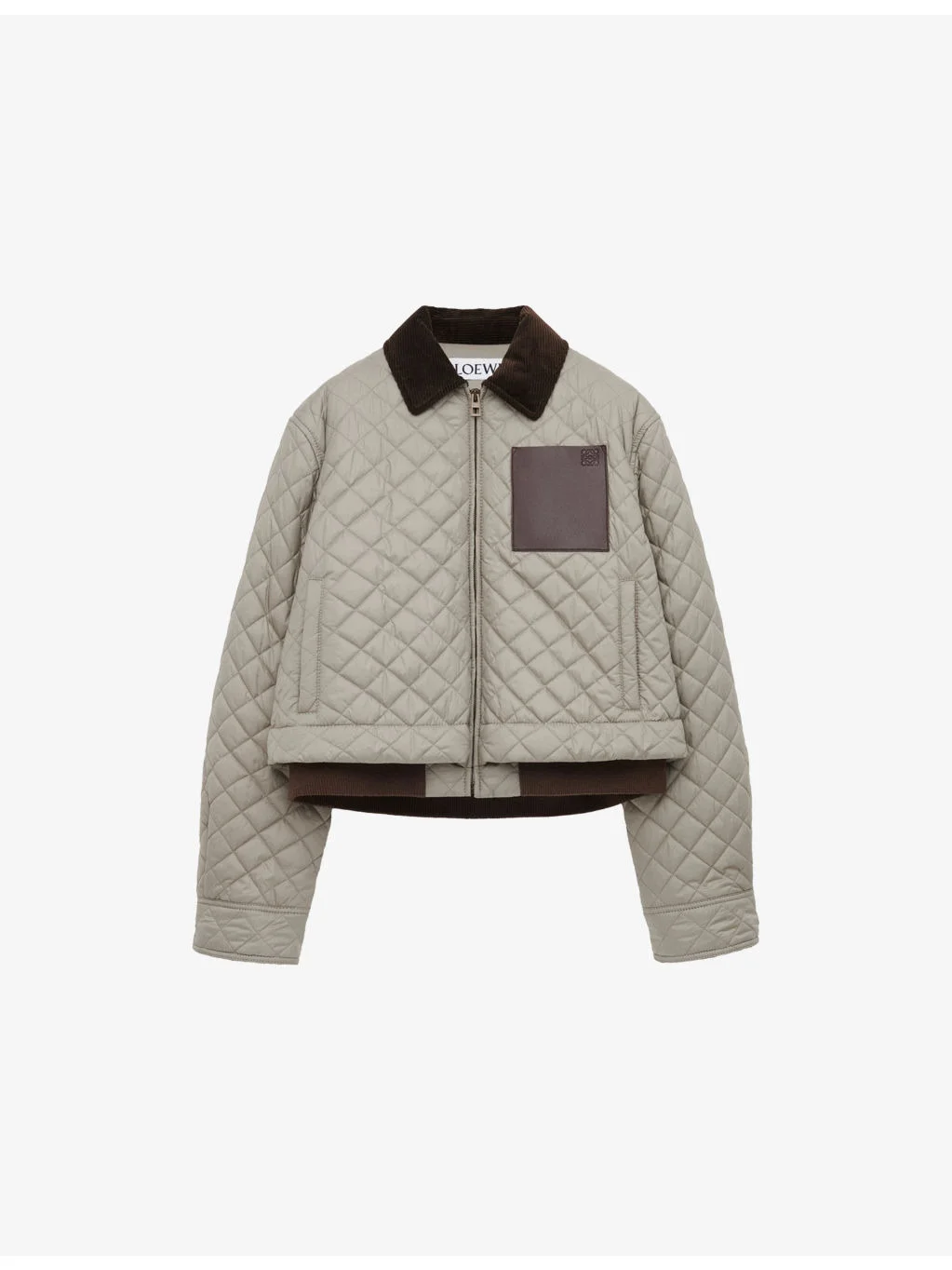 PRODUCT DETAILS - Loewe shell jacket - 60% polyester, 30% cotton, 10% calf leather - Zip fastening - Classic collar, long sleeves, two welt pockets at front, one leather patch pocket at chest, all-over quilting, cropped length - Dry clean - Made in Italy - True to size - Lightweight, non-stretch Ref: R04566944