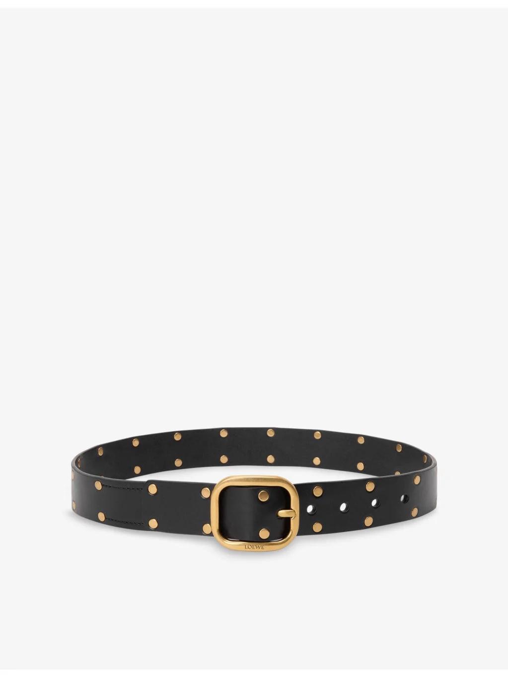 PRODUCT DETAILS - Loewe leather belt - 100% calf leather - Adjustable buckle fastening - Rounded buckle, engraved branding, gold-toned hardware, five holes, pin buckle, all-over stud embellishments - Width 3.5cm - Specialist leather clean - Made in Spain Ref: R04567182