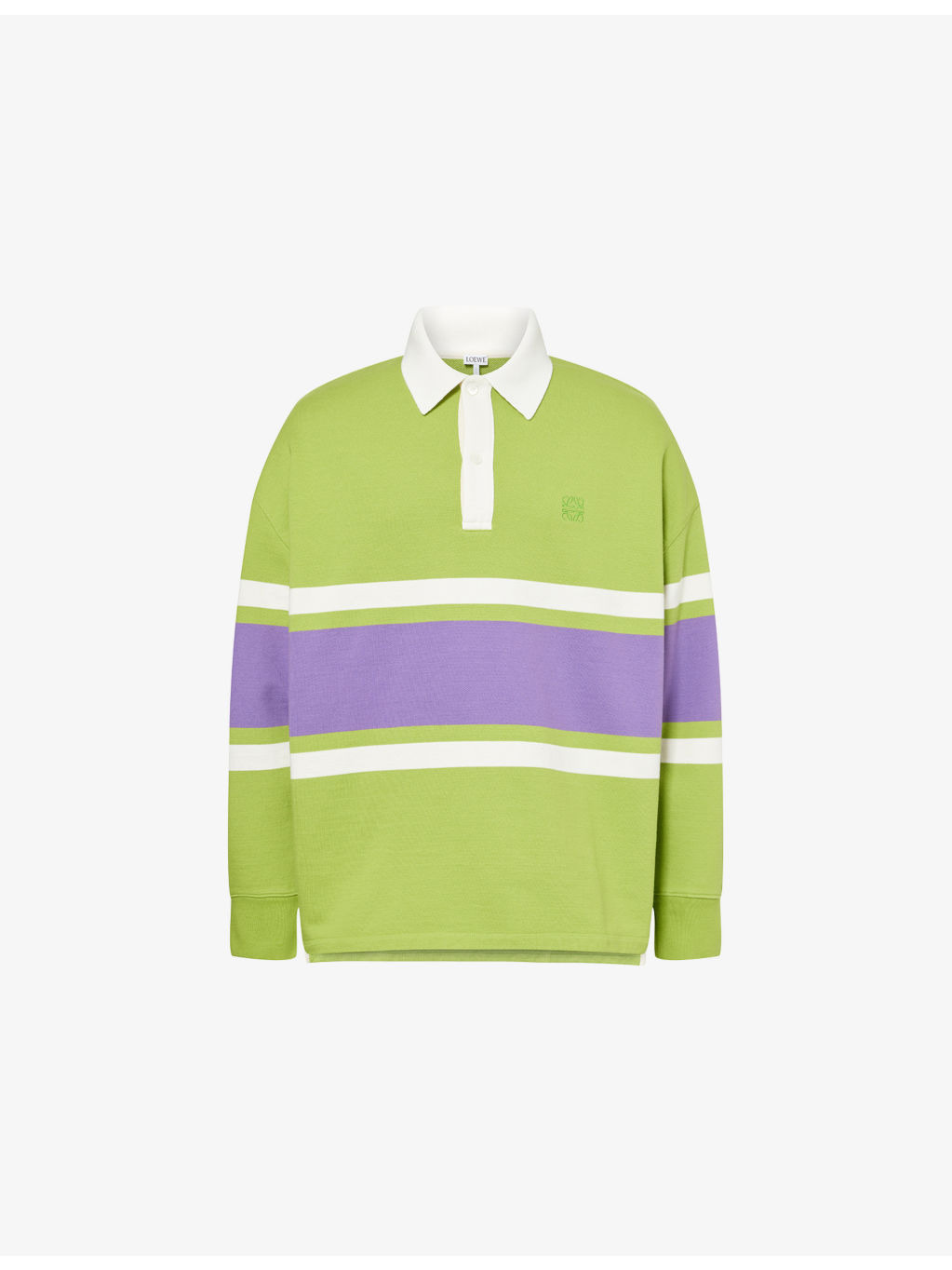 PRODUCT DETAILS - Loewe cotton polo shirt - 100% cotton - Button fastening at front - Classic collar, long sleeves, striped pattern, ribbed trims - Machine wash at 30°C - Made in Portugal - Model is 6ft 2in/1.88m and wears a size medium - Lightweight, non-stretch Ref: R04494956