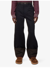 PRODUCT DETAILS - Loewe denim jeans - 100% cotton - Button and zip-fly fastening - Relaxed fit, mid-rise, wide leg, belt loops, classic five pockets, buckle detailing at back - Machine wash cold - Made in Italy - Size UK 32: rise 13in / 33.5cm, inside leg 31in / 79.5cm, leg opening 20in / 51.5cm - Model is 6ft 2in/1.88m and wears a size UK 32 - Midweight, non-stretch Ref: R04522406