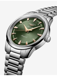 PRODUCT DETAILS - Longines stainless-steel automatic watch - Case material: 100% stainless steel - Strap material: 100% stainless steel - Crown: 100% stainless steel - Bezel: 100% stainless steel - Style Number: L1.650.4.02.6 - Movement type: automatic - Fastening: double security folding clasp with micro adjustment system - Dial: green lacquered polished - Index: applied indexes - Hands: pink hands - Glass: scratch-resistant sapphire crystal, with several layers of anti-reflective coating on both sides - Calibre: L888 - Case thickness: 10.80mm - Case diameter: 40mm - Water resistance: water-resistant to 5 bar (50m) - Made in: Switzerland - Warranty: 5 years - Returns: warranty card to be included with return Ref: R04525266