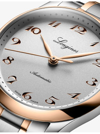 PRODUCT DETAILS - Longines rose-gold and stainless-steel automatic watch - Case material: 100% stainless steel - Strap material: 100% stainless steel, 100% 18ct rose gold - Crown: 100% stainless steel, 100% 18ct rose gold - Bezel: 100% stainless steel, 100% 18ct rose gold cap - Style Number: L2.357.5.70.7 - Movement type: automatic - Fastening: triple safety folding clasp and push-piece opening mechanism - Dial: Silver - Index: engraved Arabic numerals - Hands: Pink hands - Glass: scratch-resistant sapphire crystal, with several layers of anti-reflective coating on both sides - Calibre: L888 - Case thickness: 9.20 mm - Case diameter: 34.00 mm - Technical details: COSC Certified - Water resistance: water-resistant to 3 bar (30 m) - Made in: Switzerland - Warranty: 5 years - Returns: warranty card to be included with return Ref: R04472689