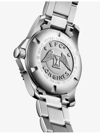 PRODUCT DETAILS - Longines stainless-steel automatic watch - Case material: 100% stainless steel - Strap material: 100% stainless steel - Crown material: 100% stainless steel - Bezel: 100% ceramic - Style Number: L3.781.4.56.6 - Movement type: automatic - Fastening: double safety folding clasp - Dial: round, Sunray black - Hands: Silvered polished hands - Index: applied Arabic numerals and indexes - Glass: scratch-resistant sapphire crystal, with several layers of anti-reflective coating on both sides - Calibre: L888 - Date window: yes - Technical details: date, Swiss Super-LumiNova® - Case thickness: 11.90mm - Case diameter: 41.00mm - Water resistance: 30 bar / 30 atm / 300m / 984ft - Made in Switzerland - Returns: 5 years, warranty card to be included with return. Ref: R04473124