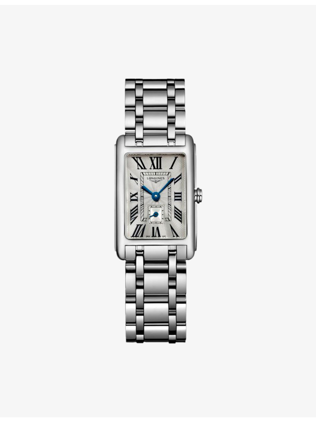 PRODUCT DETAILS - Longines stainless-steel quartz watch - Case material: 100% stainless steel - Strap material: 100% stainless steel - Crown material: 100% stainless steel - Style Number: L5.255.4.71.6 - Movement type: quartz - Fastening: triple safety folding clasp and push-piece opening mechanism - Dial: rectangular, silver flinque - Hands: blued steel hands - Index: painted Roman numerals and indexes - Glass: scratch-resistant sapphire crystal - Calibre: L178 - Stones: N/A - Case thickness: 6.90mm - Case dimensions: 20.80 x 32.00 mm - Water resistance: 3 bar / 3 atm / 30m / 100ft - Made in Switzerland - Warranty: 2 years, warranty card to be included with return. Ref: R04473145