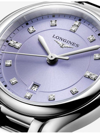 PRODUCT DETAILS - Longines stainless-steel and 0.057ct diamond quartz watch - Case material: 100% stainless steel - Strap material: 100% stainless steel - Crown: 100% stainless steel - Bezel: 100% stainless steel - Style Number: L8.142.4.07.6 - Movement type: quartz - Fastening: with triple safety folding clasp and push-piece opening mechanism - Dial: lavender - Index: diamond indexes - Hands: silvered polished hands - Glass: scratch-resistant sapphire crystal, with several layers of anti-reflective coating on both sides - Calibre: L257 - Case thickness: 8.30mm - Case diameter: 30mm - Stones: 15 Top Wesselton VS-SI diamonds, totalling 0.057ct - Water resistance: water-resistant to 3 bar - Made in: Switzerland - Care: please refer to the brand's instructions - Warranty: 2 years - Returns: warranty card and diamond certificate Ref: R04584660