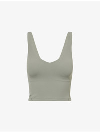 PRODUCT DETAILS - lululemon stretch-jersey top - 81% nylon, 19% elastane; lining 89% nylon, 11% elastane - Slim fit, cropped, V-neck, shoulder straps, brand print at back, removable padding at internal bra - Machine wash at 30°C - True to size - Model is 5ft 10in/1.78m and wears a size UK 8 - Lightweight, stretchy Ref: R04567760