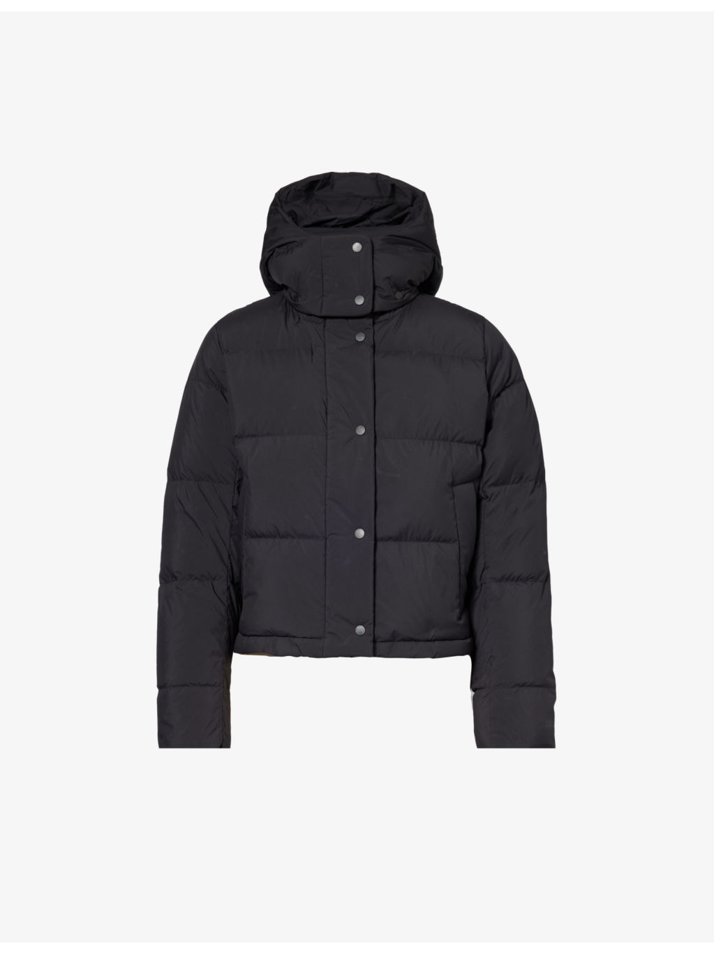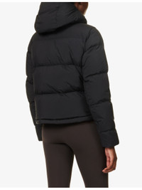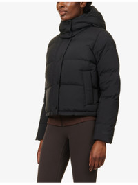 PRODUCT DETAILS - lululemon recycled-polyester jacket - 100% recycled polyester; filling 80% goose down, 20% goose feather; lining 100% polyester - Concealed zip fastening at front - Regular fit, funnel neck, detachable hood, rubberised branding at hood, long sleeves, two zipped pockets at front, padded, drawcord hem, cropped - Machine wash cold - True to size - Model is 5ft 10in/1.78m and wears a size UK 8 - Midweight, non-stretch Ref: R04214895