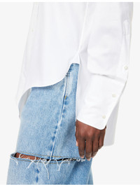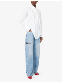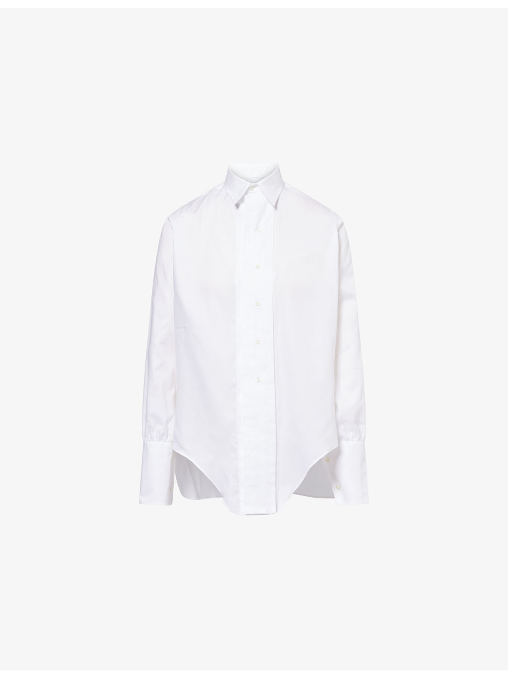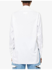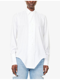 PRODUCT DETAILS - Maison Margiela cotton-poplin shirt - 100% cotton - Exposed button fastening at front - Spread collar - Buttoned cuffs - Regular fit, collar, long sleeves, four stitching signature at back, asymmetric hem - Dry clean - Made in Italy - True to size - Size 4: length 29in / 75cm - Model is 5ft 10in/1.78m and wears a size 4 - Lightweight, slight stretch Ref: R04485143