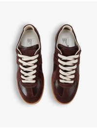 PRODUCT DETAILS - Maison Margiela leather low-top trainers - 100% leather - Lace-up fastening - Round toe, suede panels, branded tongue, stitch branding to the back, contrasting midsole - Made in Italy - Specialist leather clean - Upper: 100% leather - Lining: 100% cotton - Sole: 100% rubber Ref: R04335171