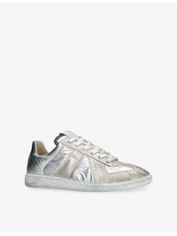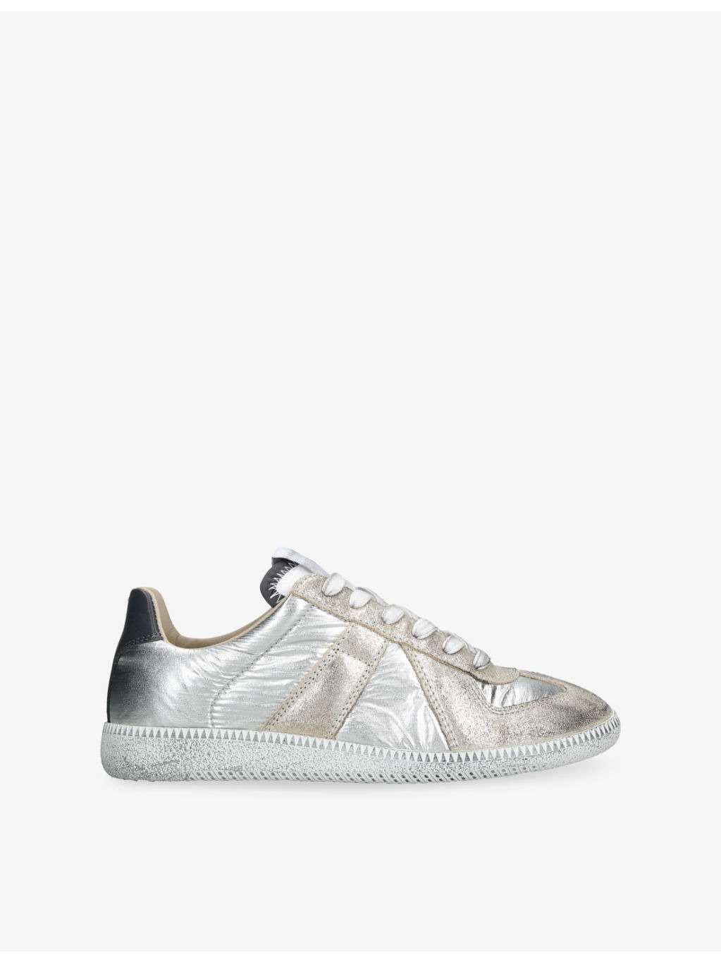 PRODUCT DETAILS - Maison Margiela leather trainers - 100% leather - Lace-up fastening - Closed round toe, low top, panelled design, metallic finish - Specialist leather clean - Upper: 100% leather - Lining: 100% leather - Sole: 100% rubber Ref: R04500358