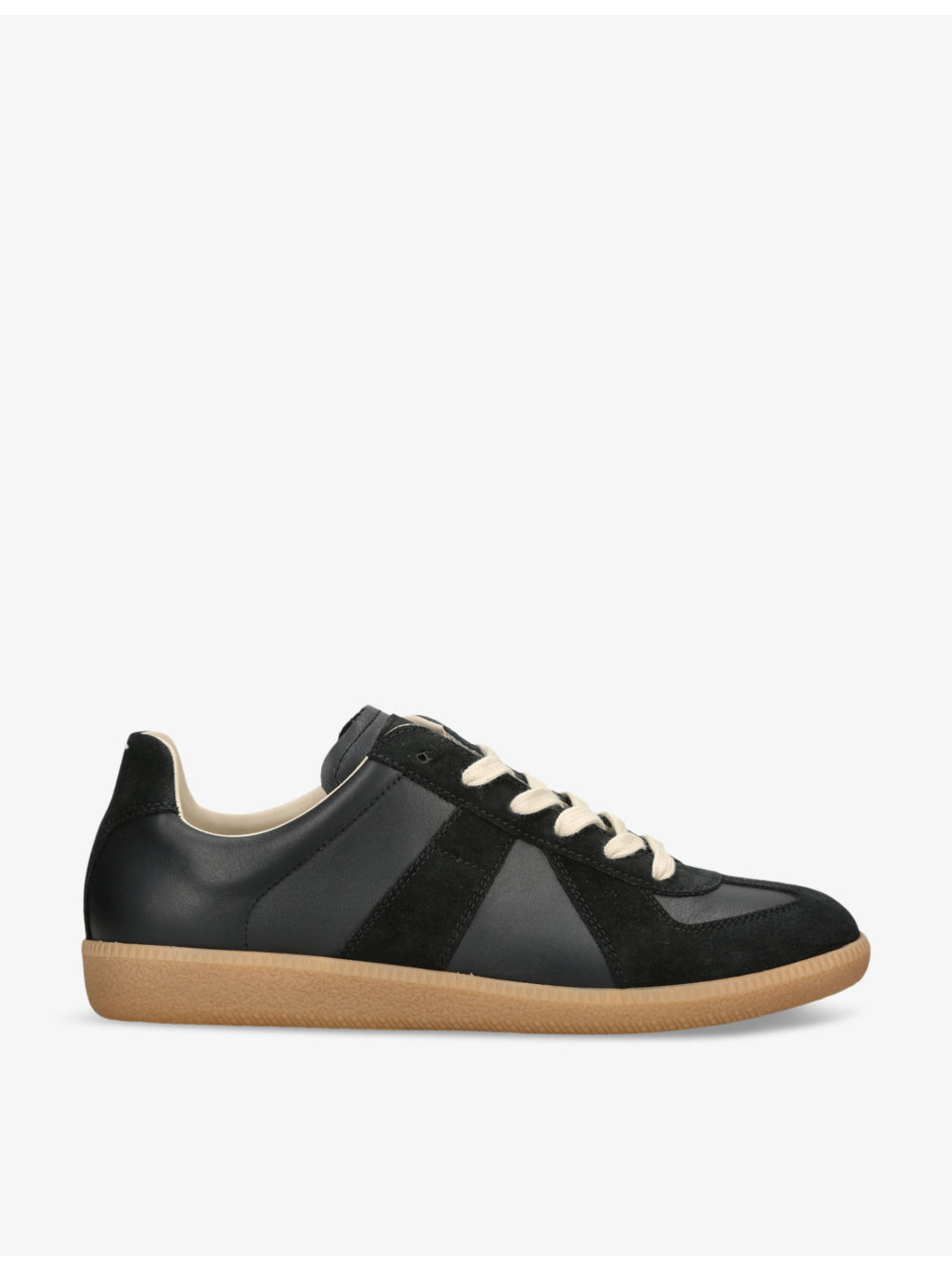 PRODUCT DETAILS - Maison Margiela leather low-top trainers - 100% nappa leather; trims 100% suede - Lace-up fastening - Closed round toe, monochrome design, panelled construction, contrast laces, padded heel counter, contrast outsole - Specialist leather clean - Upper: 100% nappa leather; trims 100% suede - Lining: 100% leather - Sole: 100% rubber Ref: R04240847