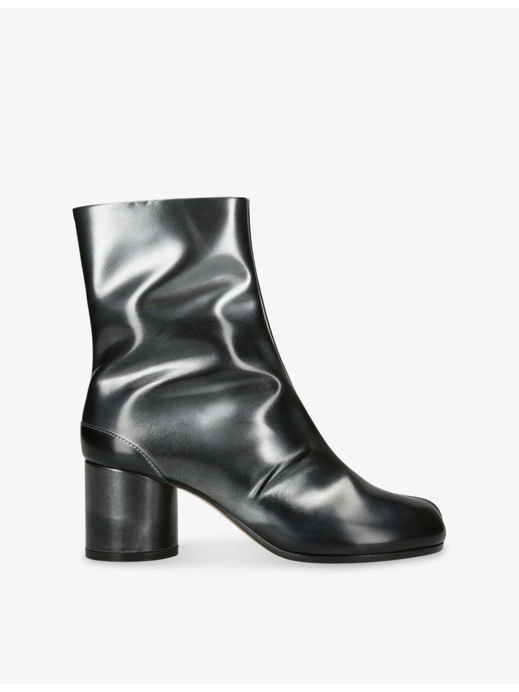 PRODUCT DETAILS - Maison Margiela leather heeled ankle boots - 100% leather - Zip fastening - Closed split toe, ankle length, metallic-effect upper, white stitch detail at back, cylindrical heel - Heel height 2.3” - Specialist leather clean - Made in Italy - Upper: 100% leather - Lining: 100% leather - Sole: 100% leather Ref: R04500361