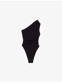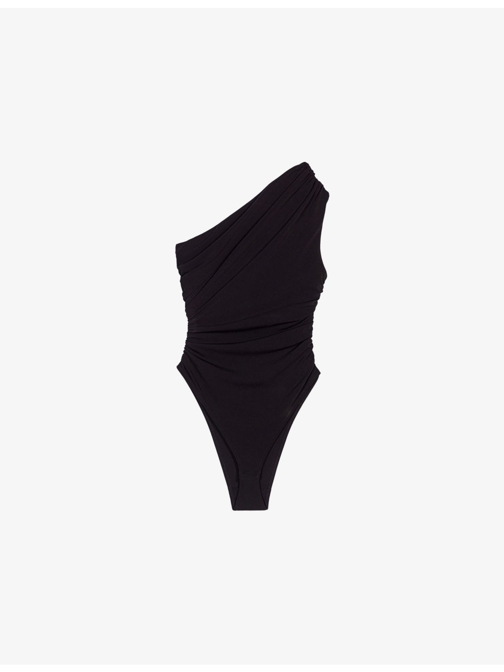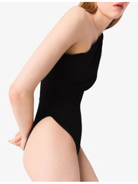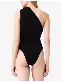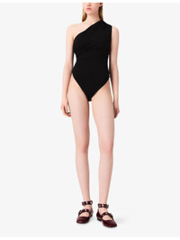 PRODUCT DETAILS - Maje stretch-woven bodysuit - 92% polyester, 8% elastane - Pressed stud fastening - Slim fit, asymmetric neckline, draping at shoulder - Machine wash at 30°C - True to size - Model is 5ft 10in/1.78m and wears a size UK 8 - Lightweight, stretchy Ref: R04490319