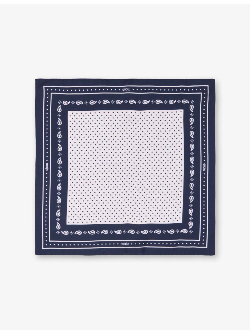 PRODUCT DETAILS - Maje silk-twill scarf - 100% silk - Square shape, polka-dot print, paisley trim, stitched flat edges - Length 60cm, width 60cm - Hand wash Ref: R04578870