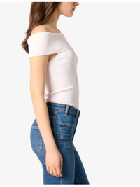 Rib knit bardot-neck top
