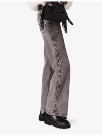 PRODUCT DETAILS - Maje stretch-denim jeans - 99% cotton, 1% elastane - Button and zip-fly fastening - Slim fit, mid rise, belt loops, five pockets, wide leg, bead embellishment - Machine wash at 30°C - True to size - Model is 5ft 10in/1.78m and wears a size UK 8 - Midweight, slight stretch Ref: R04532826