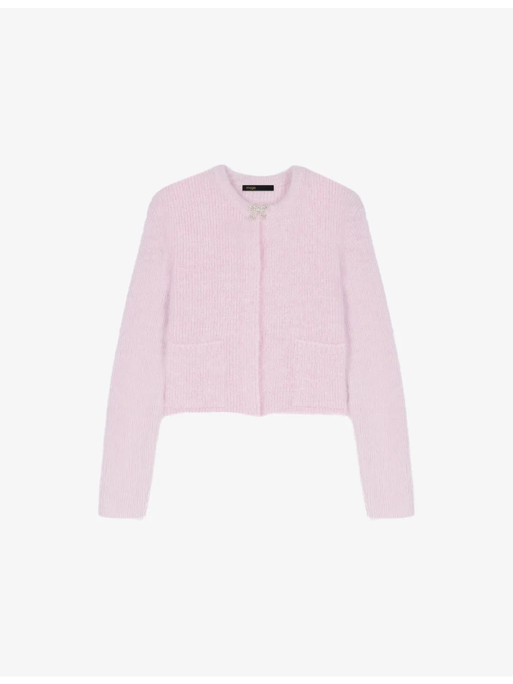PRODUCT DETAILS - Maje knitted cardigan - 52% polyamide, 48% alpaca - Button fastening - Regular fit, round-neck, embellished bow, long sleeves, side pockets, ribbed texture - Hand wash - True to size - Midweight, slight stretch Ref: R04578881