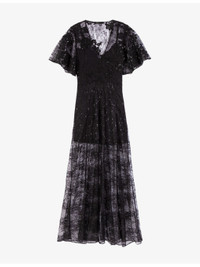 PRODUCT DETAILS - Maje lace dress - 100% polyamide - Concealed zip fastening at back - Regular fit, V-neck, short wide sleeves, all-over butterfly embellishment, lace overlay, tonal slip dress underneath - Hand wash - True to size - Model is 5ft 11in/1.80m and wears a size UK 8 - Midweight, non-stretch Ref: R04532898