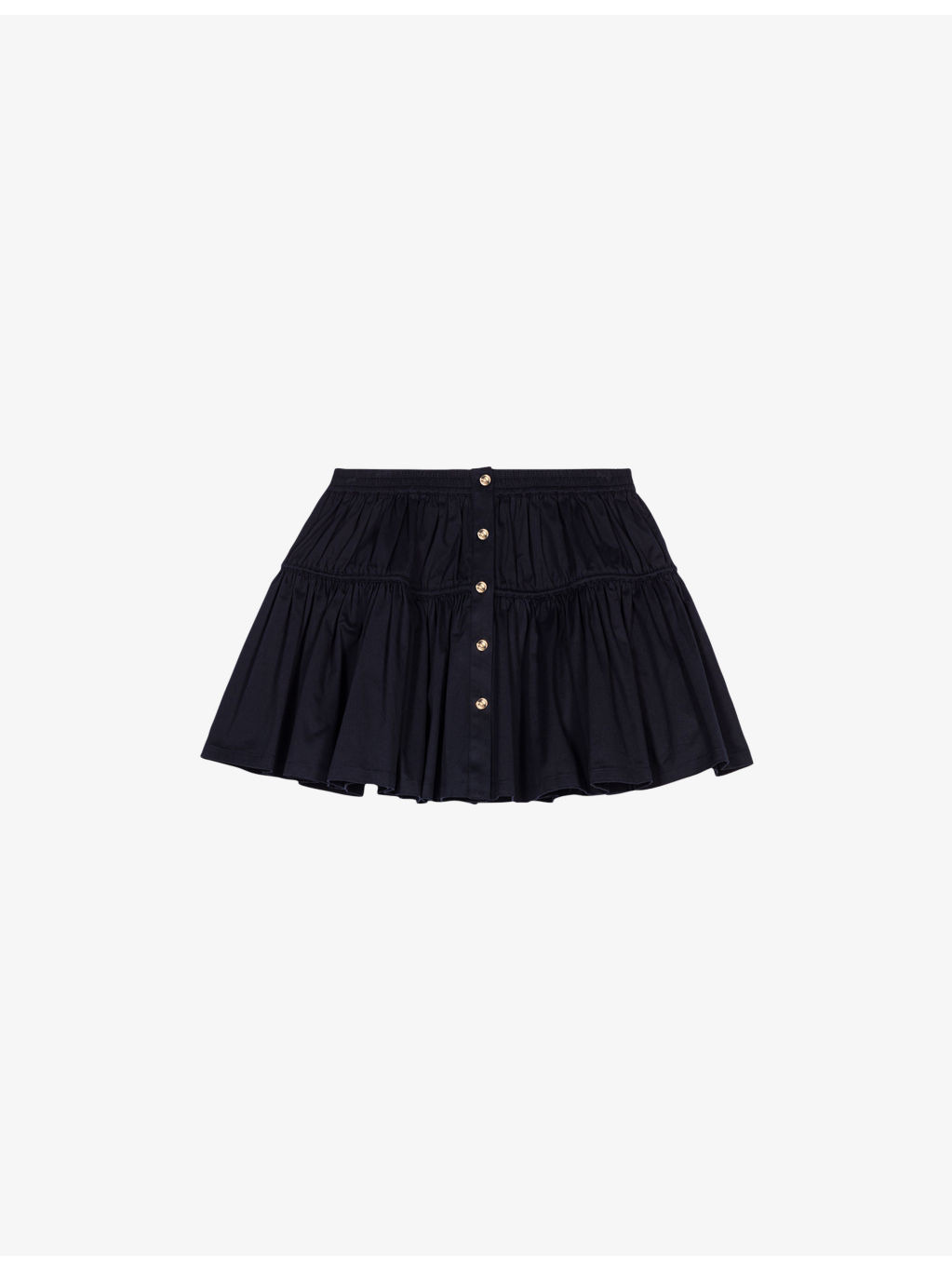 PRODUCT DETAILS - Maje stretch-cotton skirt - 98% cotton, 2% elastane - Exposed button fastening at front - Regular fit, high rise, elasticated waist, button-down design, gold-tone hardware - Machine wash at 30°C - True to size - Model is 5ft 9in/1.75m and wears a size UK 8 - Lightweight, slight stretch Ref: R04495407