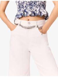PRODUCT DETAILS - Maje stretch-denim jeans - 99% cotton, 1% elastane - Button and zip-fly fastening - Regular fit, high rise, belt loops, removable clover chain belt, five pockets, wide leg - Machine wash at 30°C - True to size - Model is 5ft 9in/1.75m and wears a size UK 8 - Lightweight, slight stretch Ref: R04490306