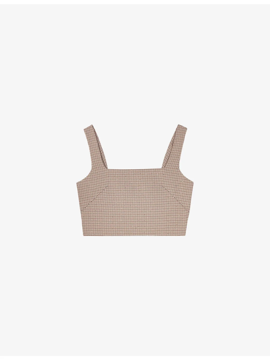 PRODUCT DETAILS - Maje stretch-woven top - 79% polyester, 19% viscose, 2% elastane - Concealed fastening - Regular fit, square neck, strappy design, all-over checked and rhinestone embellishment, cropped - Dry clean - True to size - Model is 5ft 10in/1.78m and wears a size UK 8 - Midweight, slight stretch Ref: R04549680