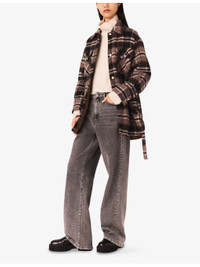 PRODUCT DETAILS - Maje wool-blend coat - 72% wool, 24% polyamide, 4% other fibres; lining 100% polyester; pocket lining 100% viscose - Button fastening - Pointed collar, long sleeves, buttoned cuffs, two flap pockets at chest, two welt pockets at front, adjustable/removable belt tie, all-over checked pattern - Dry clean - True to size - Midweight, non-stretch Ref: R04523684