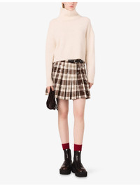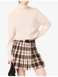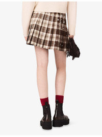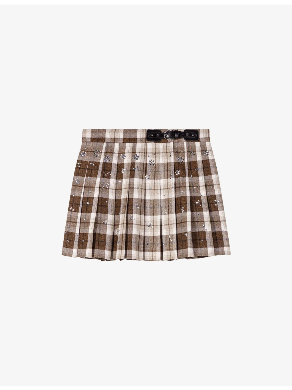 PRODUCT DETAILS - Maje cotton-blend skirt - 60% cotton, 40% polyester - Adjustable buckle fastening - Regular fit, mid-rise, adjustable buckle detail at the waist, all-over rhinestone embellishment and check pattern - Hand wash - True to size - Model is 5ft 10in/1.78m and wears a size UK 8 - Midweight, non-stretch Ref: R04549685