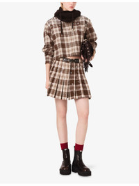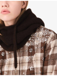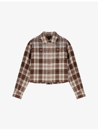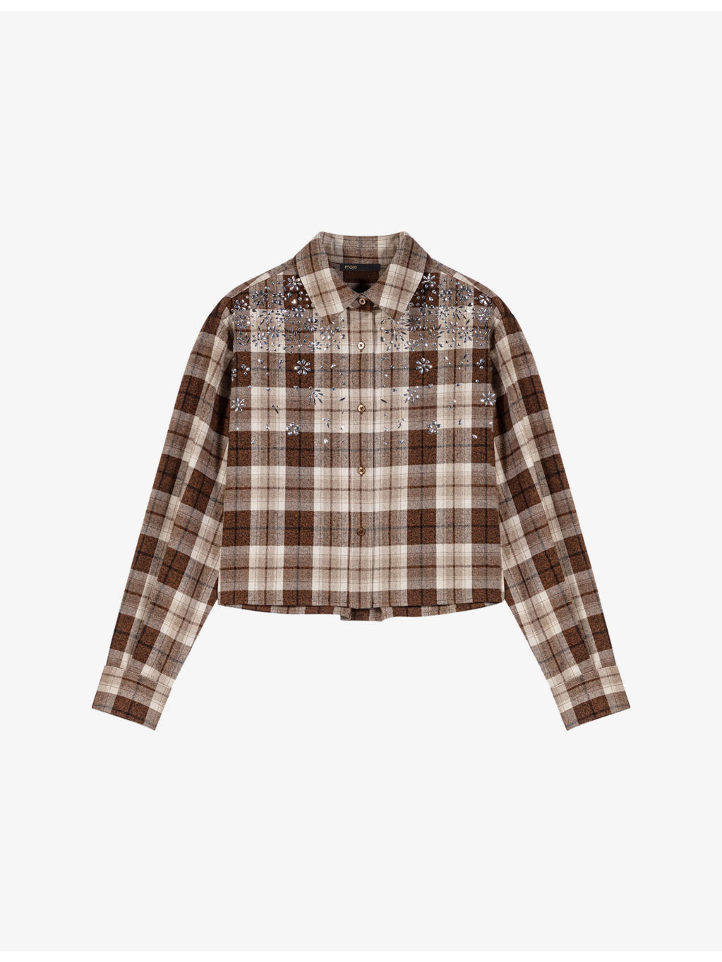 PRODUCT DETAILS - Maje cotton-blend shirt - 60% cotton, 40% polyester - Exposed button fastening at front - Regular fit, classic collar, long sleeves, all-over rhinestone embellishment, check pattern - Hand wash - True to size - Model is 5ft 10in/1.78m and wears a size UK 8 - Midweight, non-stretch Ref: R04549674