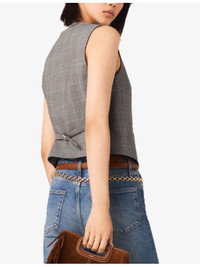 PRODUCT DETAILS - Maje stretch wool-blend waistcoat - 50% wool, 43% polyester, 5% elastane, 2% viscose - Exposed button fastening at front - Tailored fit, v-neck, sleeveless, all-over check pattern, two welt pockets at the side - Dry clean - True to size - Midweight, slight stretch Ref: R04578820