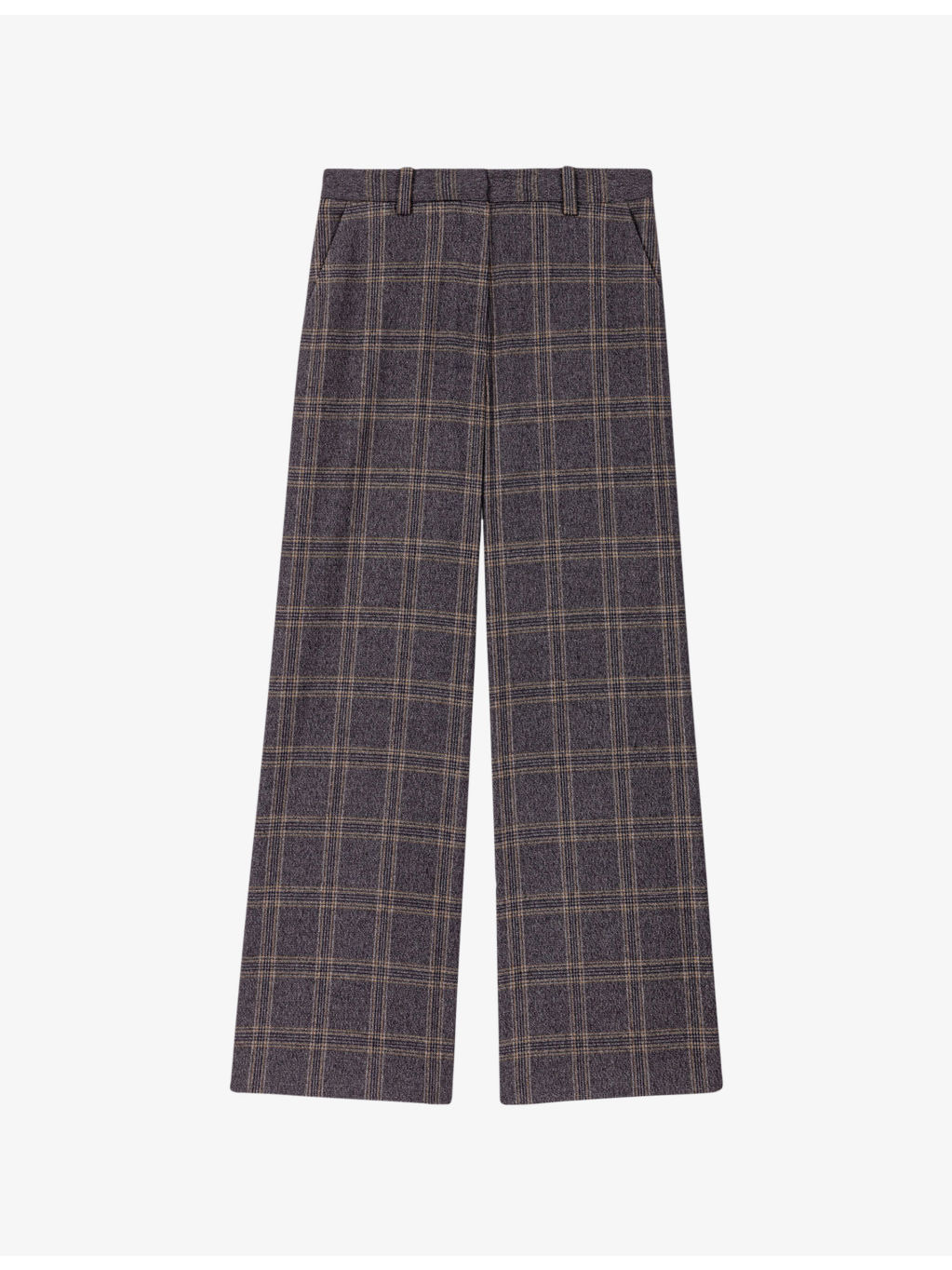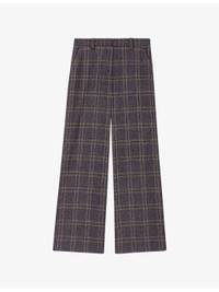 PRODUCT DETAILS - Maje stretch-woven trousers - 41% polyester, 23% acrylic, 17% wool 14% viscose, 3% elastane, 2% polyamide - Concealed hook-and-eye and zip fastening at back - Regular fit, high rise, belt loops, two slip pockets at the side, all-over check print, wide leg - Dry clean - True to size - Model is 5ft 11in/1.80m and wears a size UK 8 - Midweight, slight-stretch Ref: R04514862