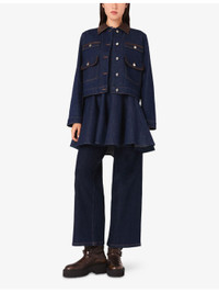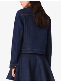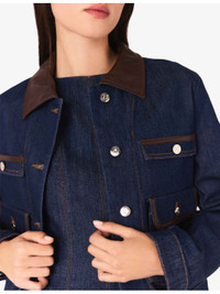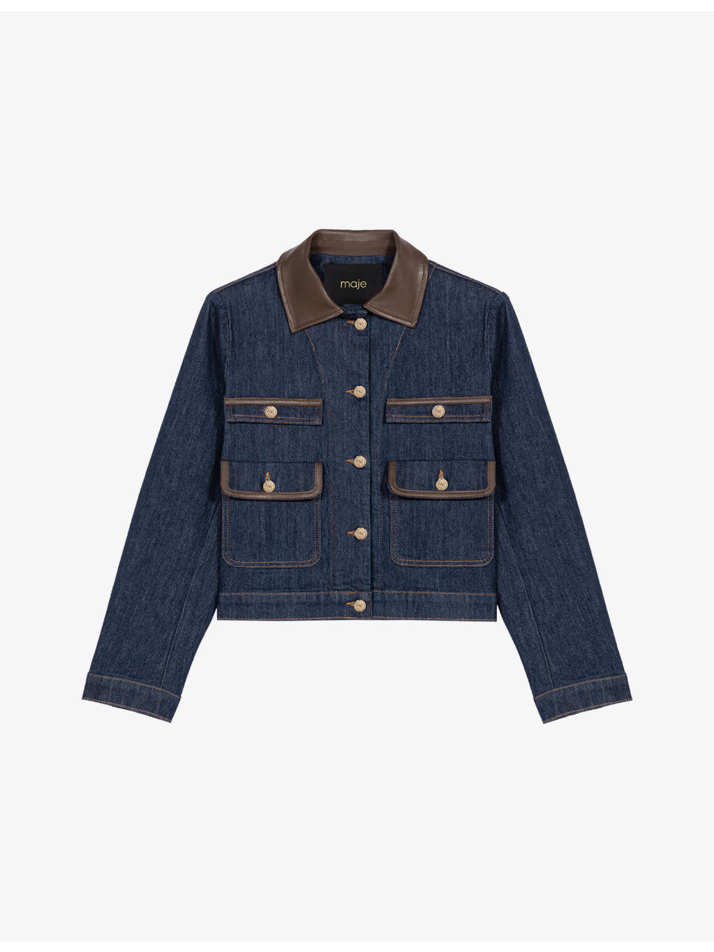 PRODUCT DETAILS - Maje stretch-denim jacket - 99% cotton, 1% elastane - Exposed button fastening at front - Relaxed fit, faux-leather collar, patch pockets at the chest, long sleeves, silver-tone hardware - Machine wash at 30°C - True to size - Model is 5ft 10in/1.78m and wears a size UK 8 - Midweight, non-stretch Ref: R04514767