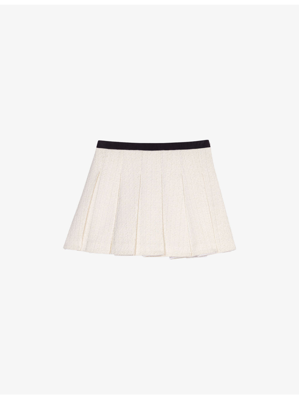PRODUCT DETAILS - Maje tweed skort - 60% cotton, 20% polyester, 14% acrylic, 3% polyamide .2% viscose, 1% metalized fibers - Slips on - Regular fit, mid rise, contrast waist, pleated skort design - Hand wash - True to size - Model is 5ft 9in/1.75m and wears a size UK 8 - Midweight, slight stretch Ref: R04495426