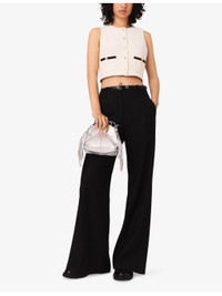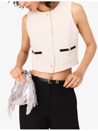 Contrast-Trim Short Sleeveless Tweed Top