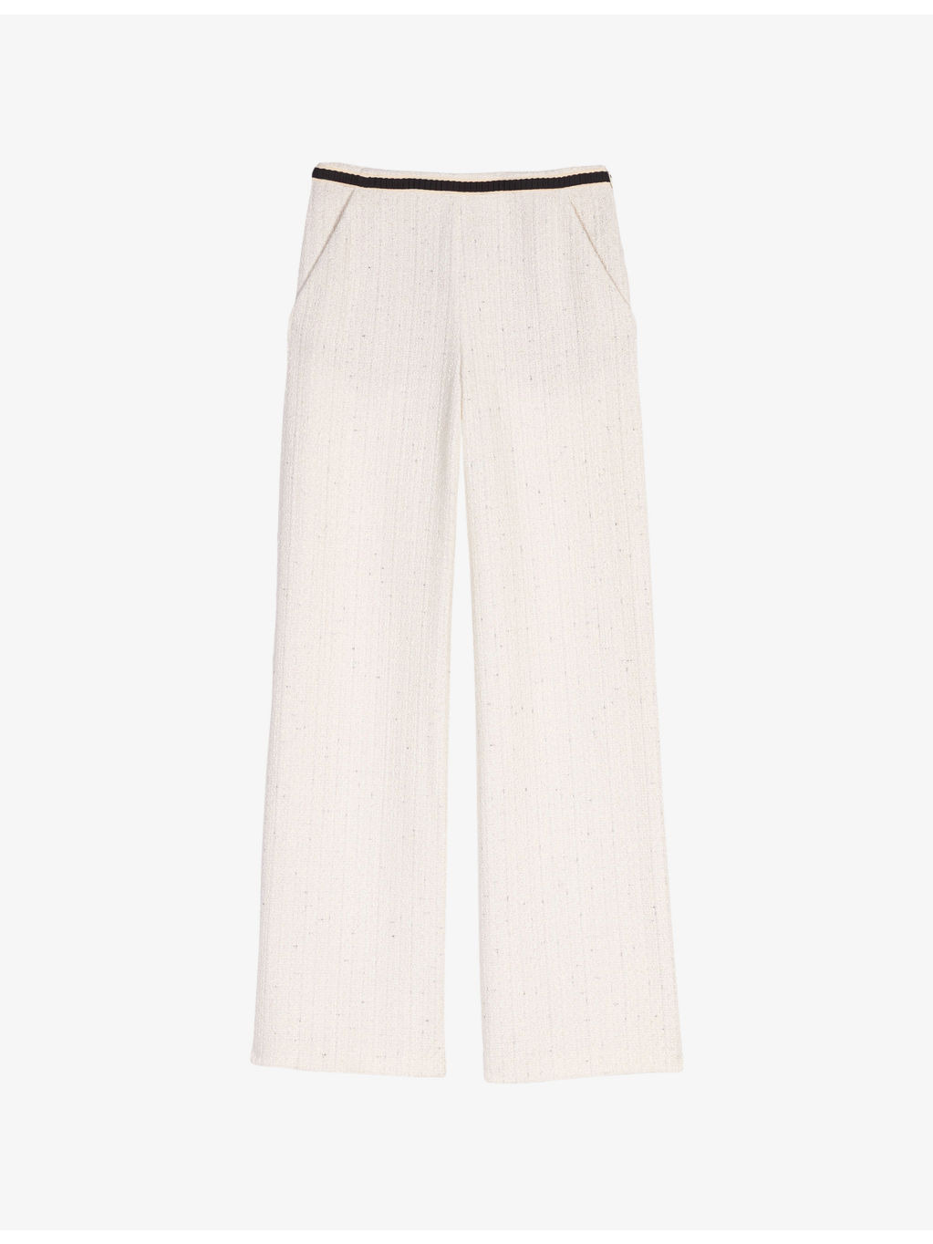 PRODUCT DETAILS - Maje tweed trousers - 60% cotton, 20% polyester, 14% acrylic, 3% polyamide, 2% viscose, 1% metalized fibers - Concealed zip fastening at side - Regular fit, mid-rise, contrast waist, two pockets at the side, wide leg - Hand wash - True to size - Model is 5ft 9in/1.75m and wears a size UK 8 - Midweight, slight stretch Ref: R04495427