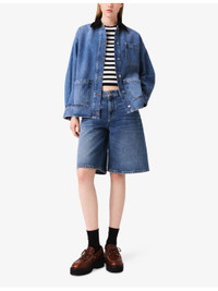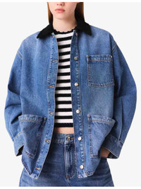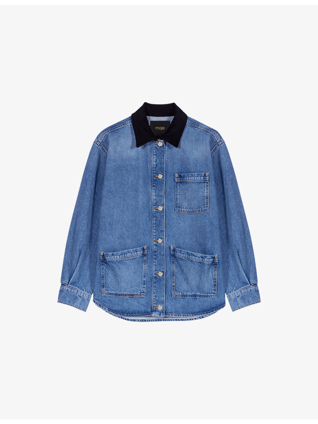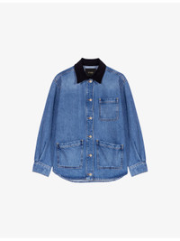 PRODUCT DETAILS - Maje denim jacket - 100% cotton - Exposed button fastening at front - Relaxed fit, contrast cord collar, patch pockets at the side, long sleeves - Machine wash at 30°C - True to size - Model is 5ft 9in/1.75m and wears a size UK 8 - Midweight, non-stretch Ref: R04495420