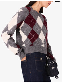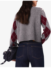 PRODUCT DETAILS - Maje wool jumper - 100% wool - Relaxed fit, crewneck, long sleeves, argyle pattern at the front - Hand wash - True to size - Model is 5ft 11in/1.80m and wears a size UK 8 - Midweight, non-stretch Ref: R04522386