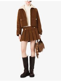PRODUCT DETAILS - Maje stretch-cotton jacket - 99% cotton, 1% elastane - Exposed zip fastening at front - Regular fit, contrast shearling collar, long sleeves, two pockets at the side - Dry clean - True to size - Model is 5ft 10in/1.78m and wears a size UK 8 - Midweight, slight stretch Ref: R04549687
