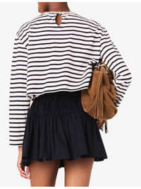 PRODUCT DETAILS - Maje cotton-jersey T-shirt - 100% cotton - Exposed button fastening at back - Relaxed fit, round neck, long sleeves, dropped shoulders, all-over stripes, crystal-embellished floral trim to neckline, keyhole back - Machine wash at 30°C - True to size - Model is 5ft 10in/1.78m and wears a size UK 8 - Lightweight, non-stretch Ref: R04509743